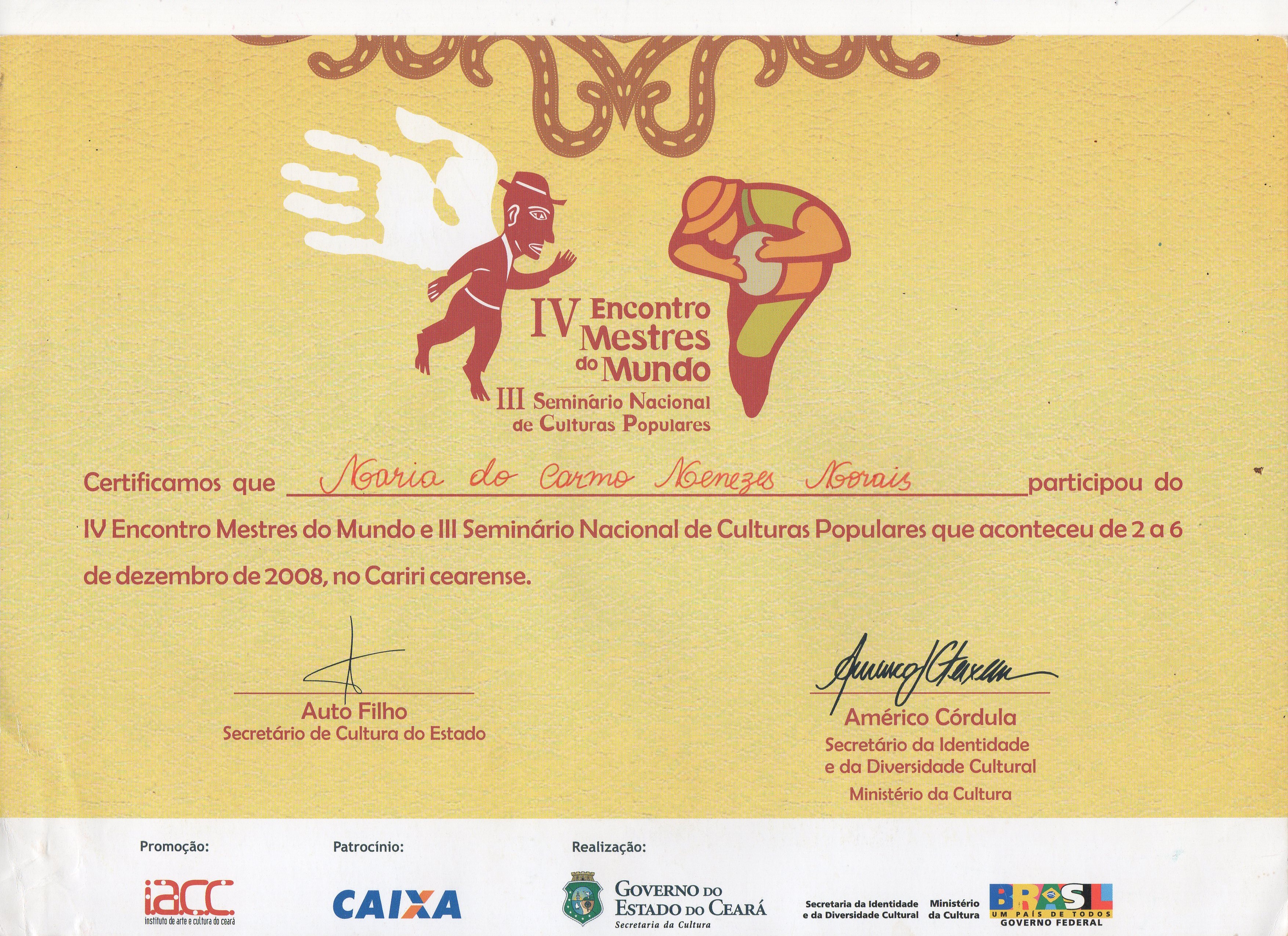 Em 2008 recebeu o título de Mestre da cultura tradicional popular do Ceará. Desde 2006 a mestra participa dos encontros de mestres do mundo promovidos pelo governo do estado do Ceará, e também do Ceará Natal de Luz e da mostra regional e Estadual. Em 2016 a mestra Marinha da Ló foi homenageada pelo evento na Praça do Ferreira, em Fortaleza, momento que enalteceu o valor e o reconhecimento da mestra.