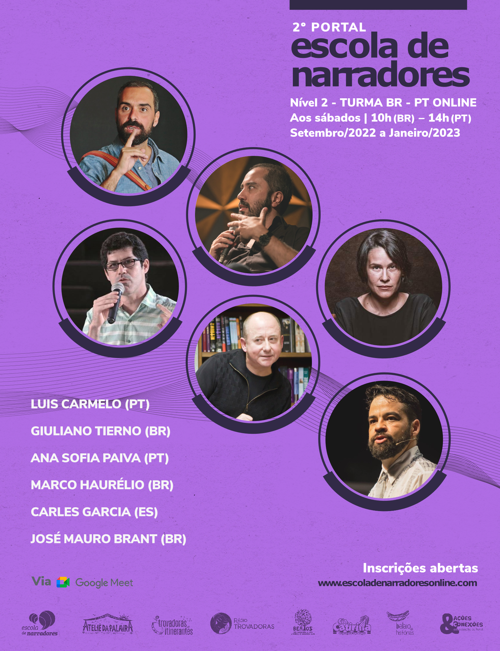Nos últimos sete anos, passaram por nossas formações mais de 100 profissionais da palavra de diferentes nacionalidades que receberam e partilharam conhecimentos (entre formadores, narradores orais, mediadores de leitura, artistas, escritores, programadores e agentes culturais) e mais de 200 alunos inscritos nos três níveis do curso com 140 concludentes do primeiro portal em um total de 14 turmas entre Ceará (Cariri e Fortaleza), Brasil e Portugal.