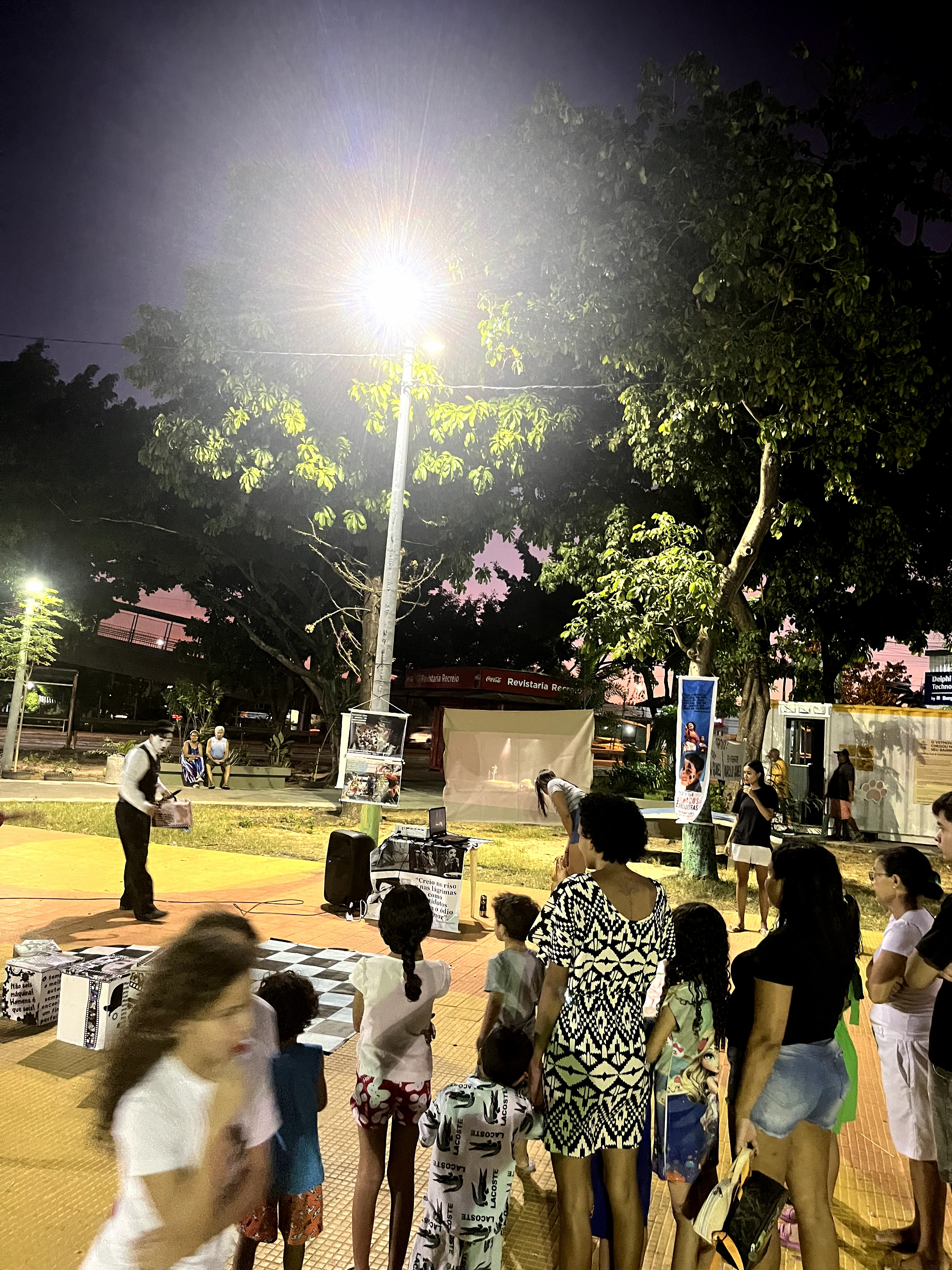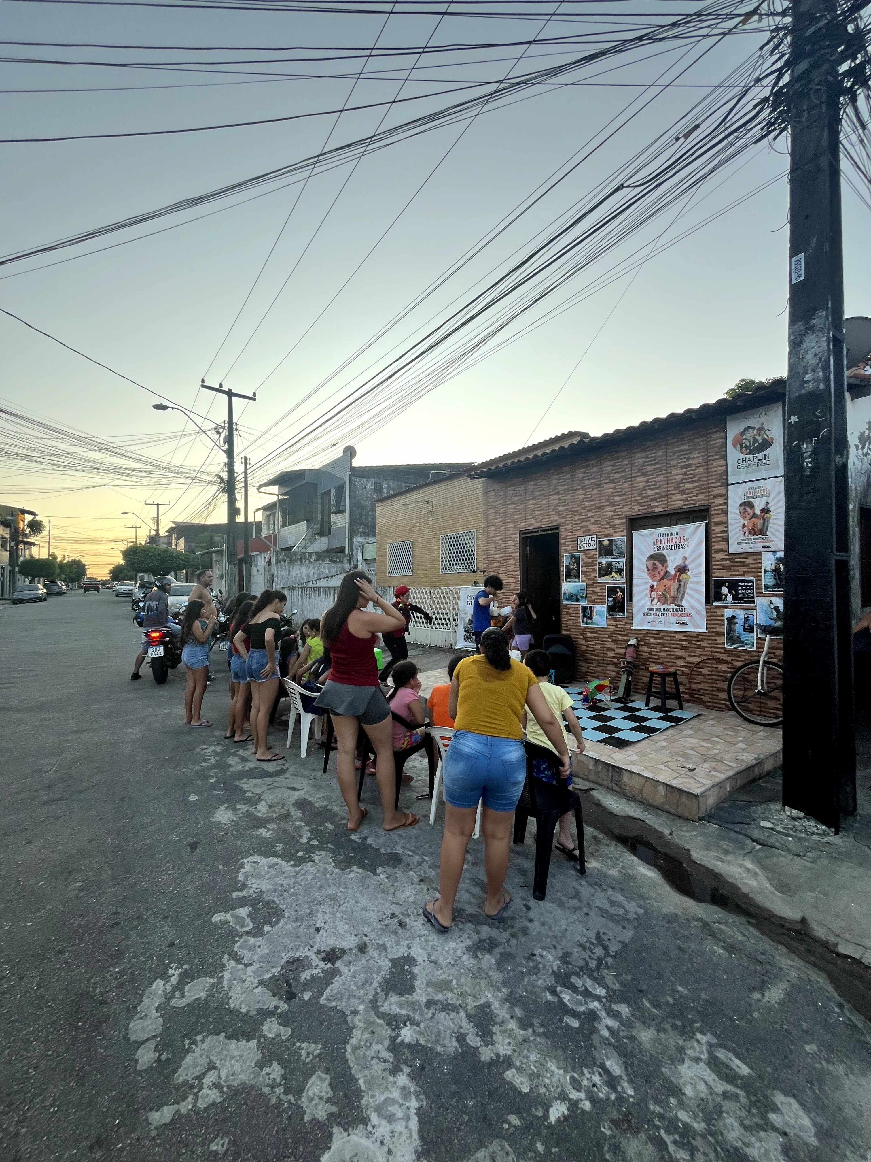 Iniciamos as atividades da teatrinho em 2012 e desde então estamos em um processo de formação/pesquisa próprio que atende as necessidades e especificidades de nosso grupo. Um teatro de inserção social, nos assumimos como teatro de bairro com inspiração chapliniana, temos nossa produção audiovisual as influência do cinema mudo e universo chapliniano.