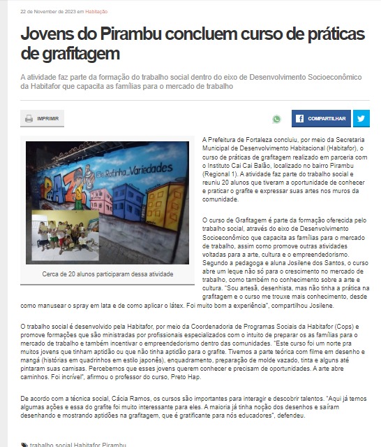 ATUA NO MERCADO CULTURAL A MAIS DE 6 ANOS - NA ELABORAÇÃO E PRODUÇÃO DE PROJETOS SOCIAIS E CULTURAIS NA CIDADE DE FORTALEZA - CEARÁ .