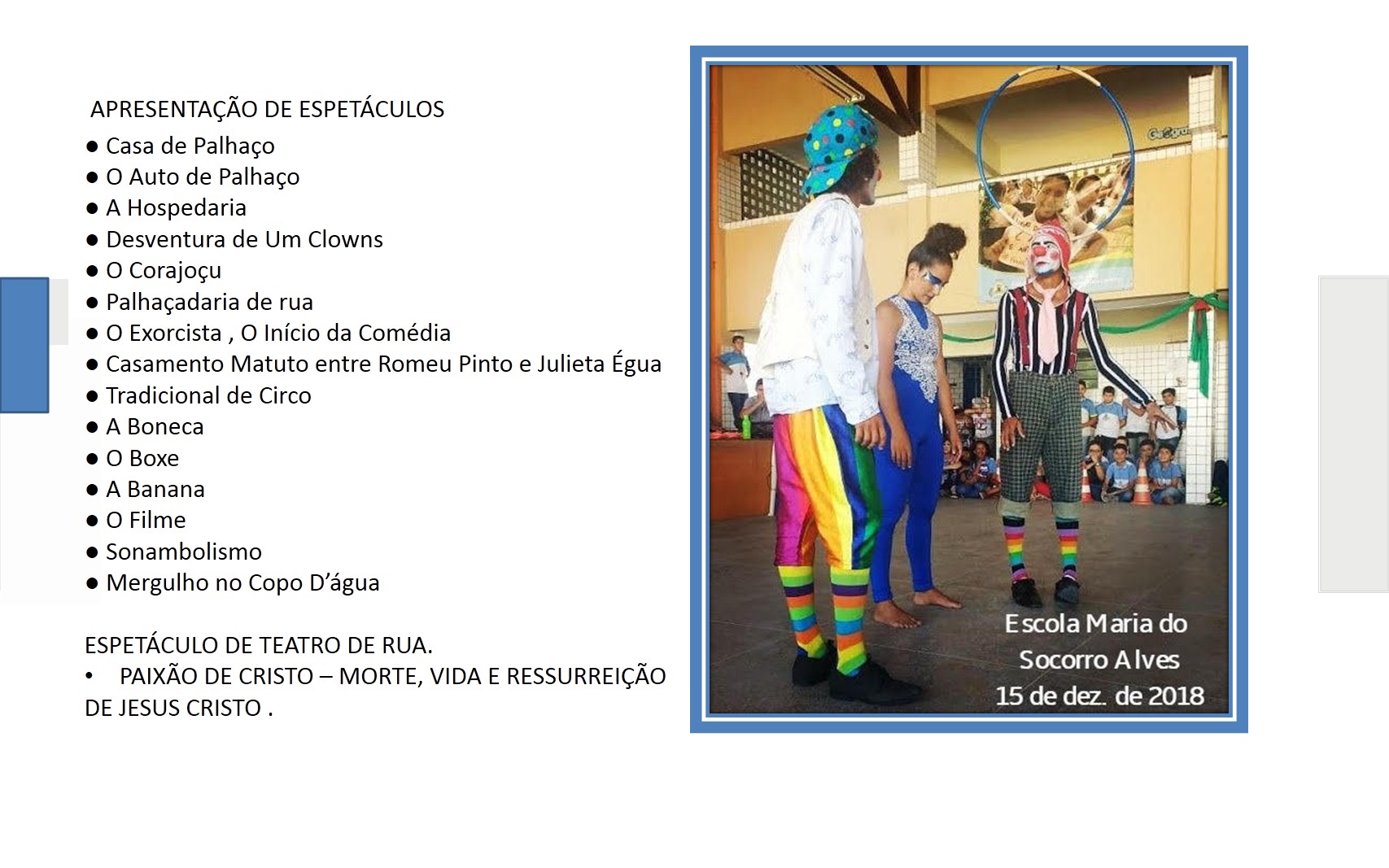 ESPETÁCULO DE TEATRO DE RUA.