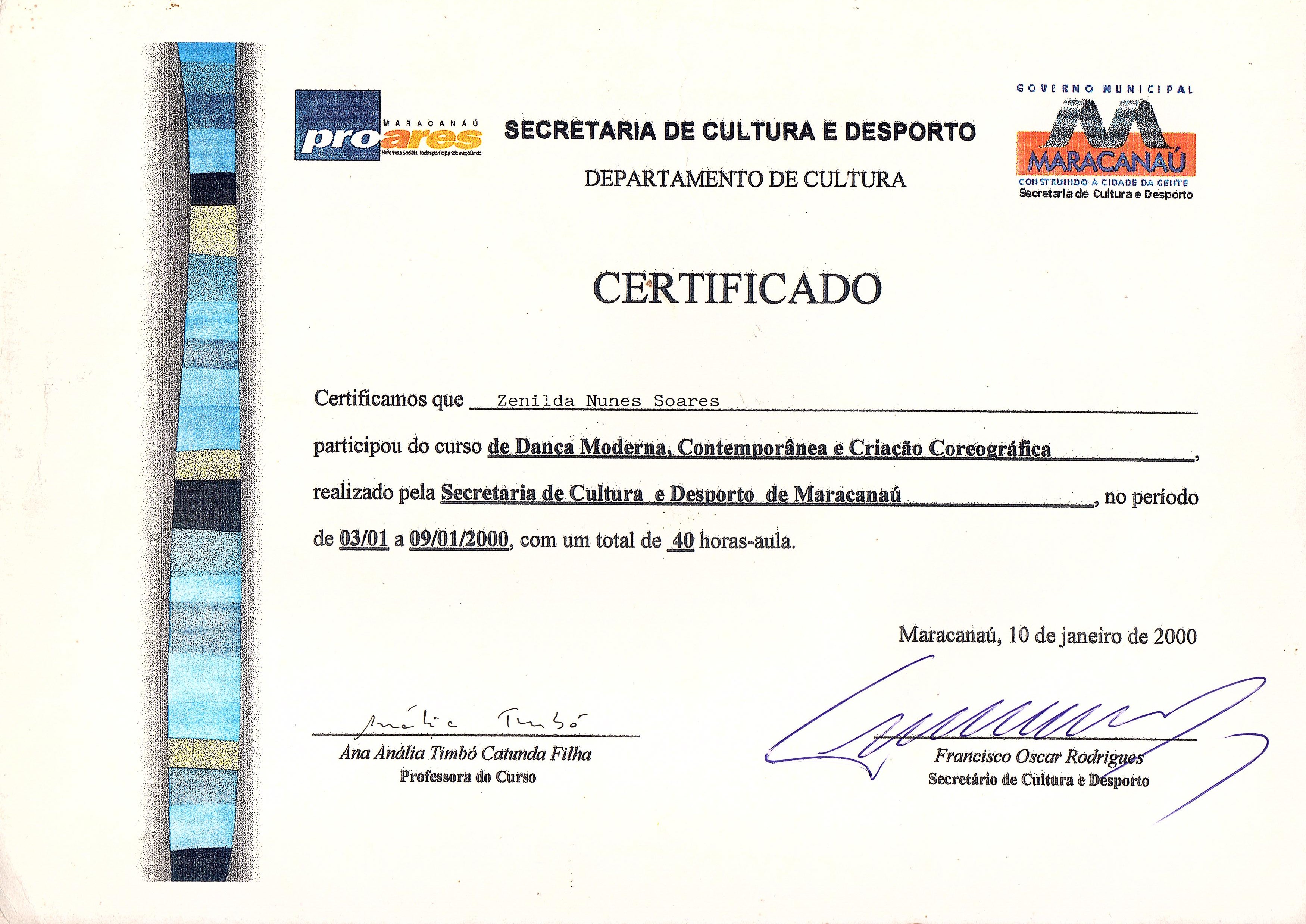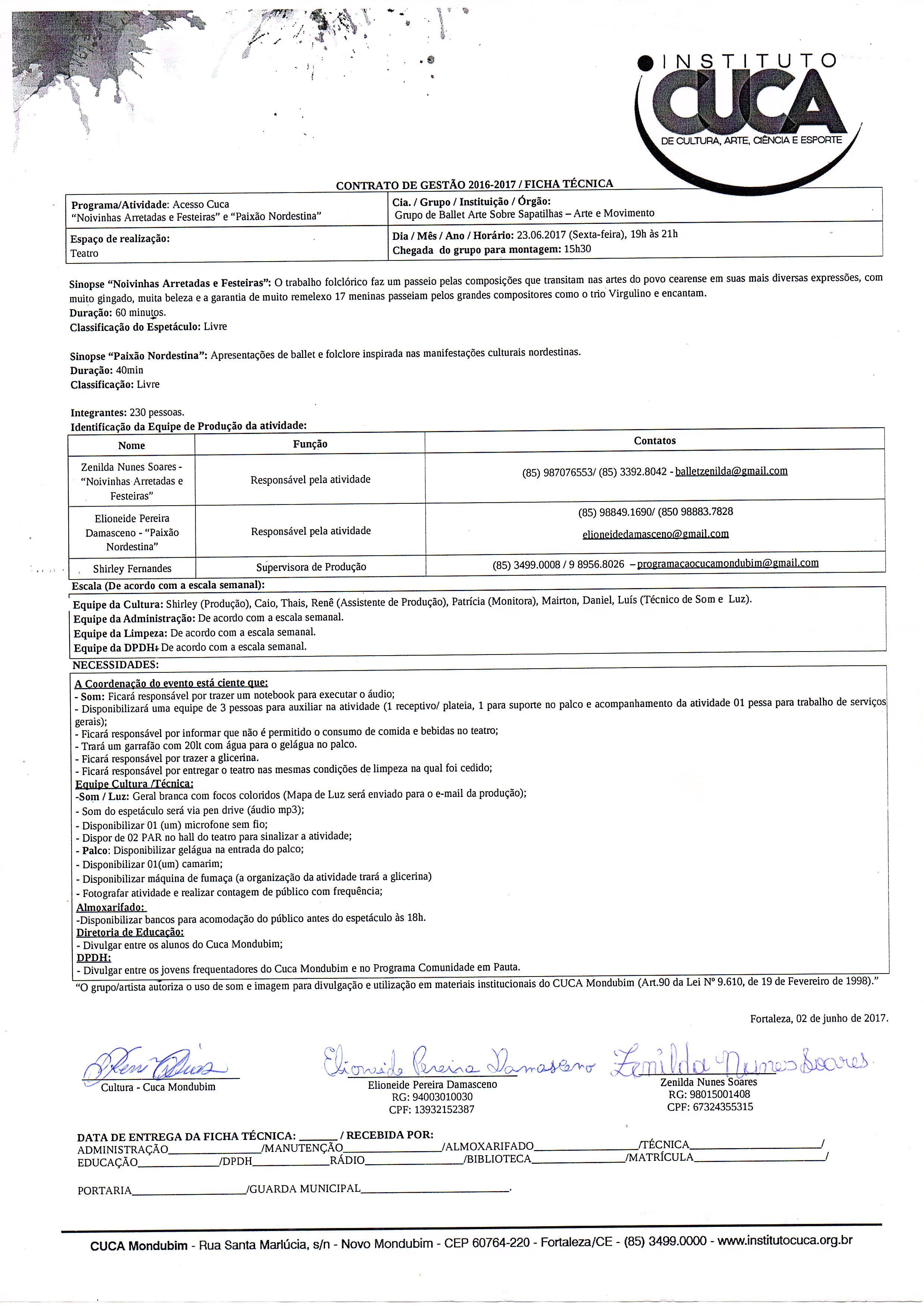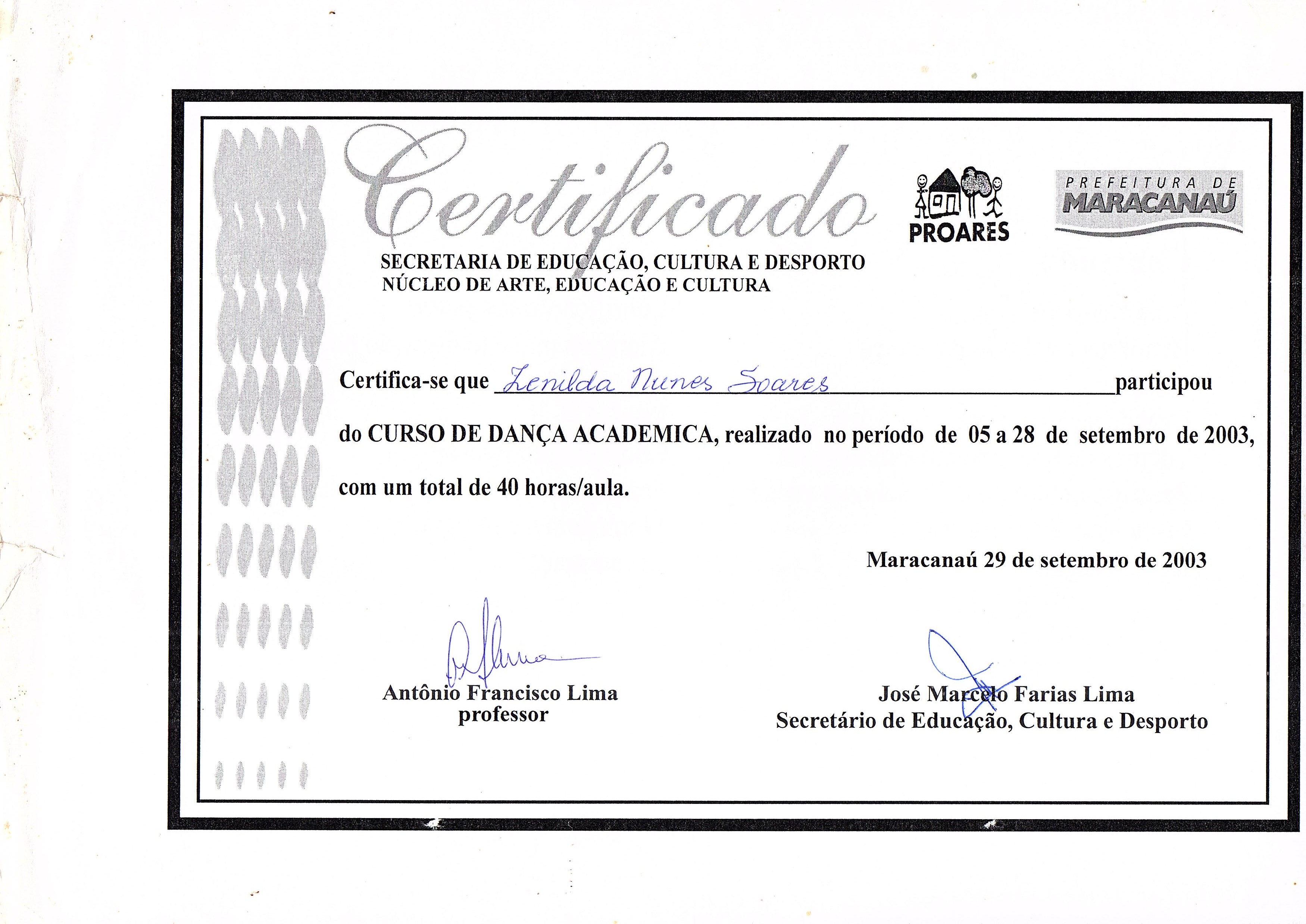 - Curso de Dança Acadêmica- Sec. de Cultura – Núcleo de Arte-Fortaleza