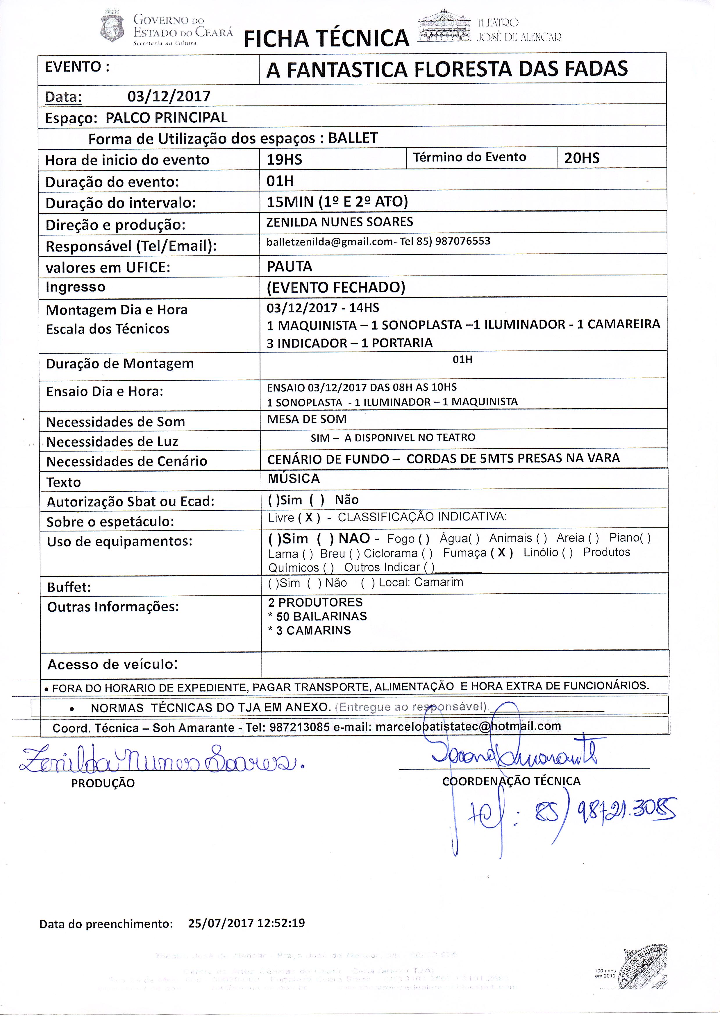 Projeto /2017 – A FANTÁSTICA FLORESTA DAS FADAS - Teatro José de Alencar.