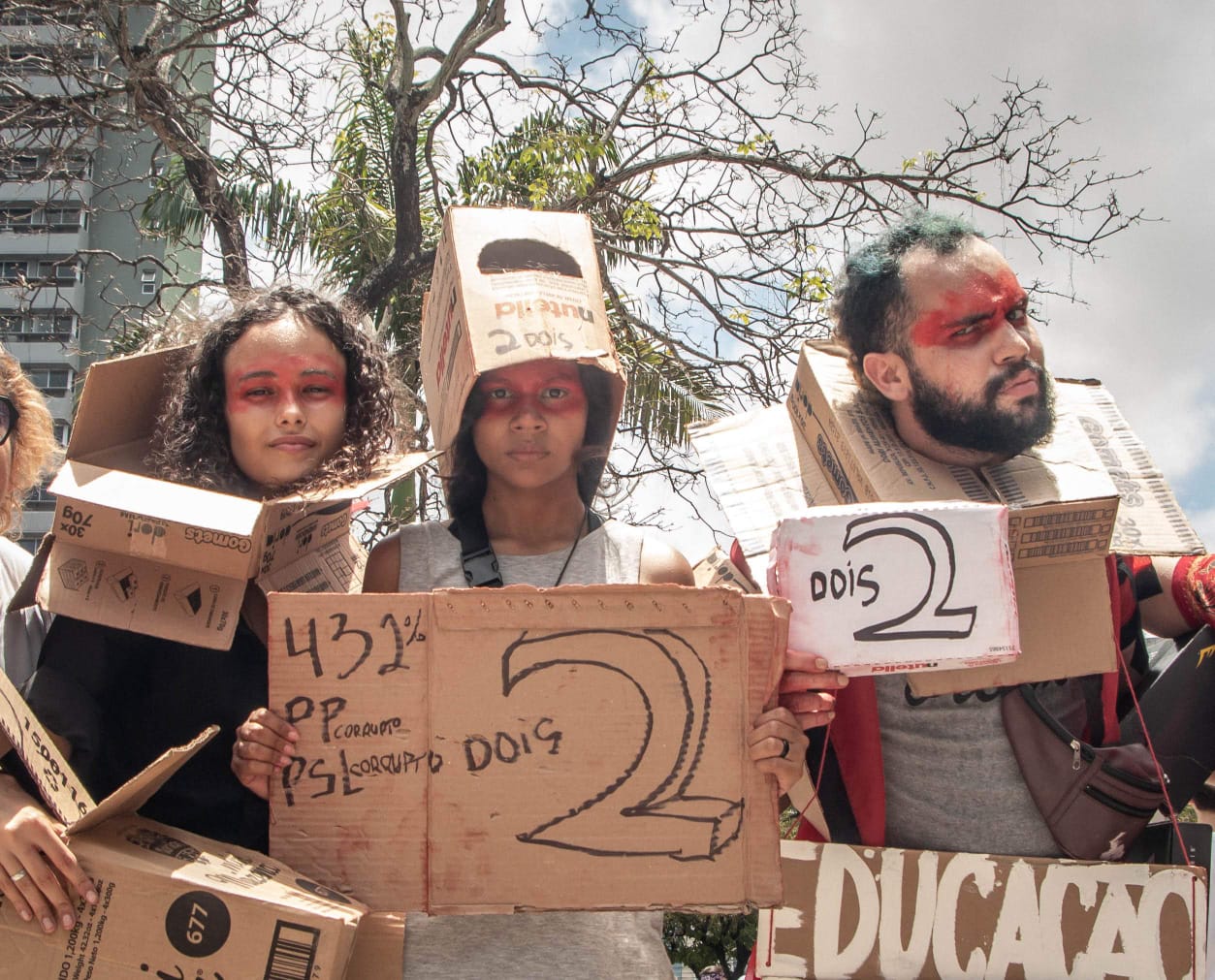 -Participou das performances: Mangue é mãe, cabeça, caixa dois, desculpa, cabeças de papelão, assédio em transportes públicos, intervenção visual com cartazes, corpos de papel machê, caixa;