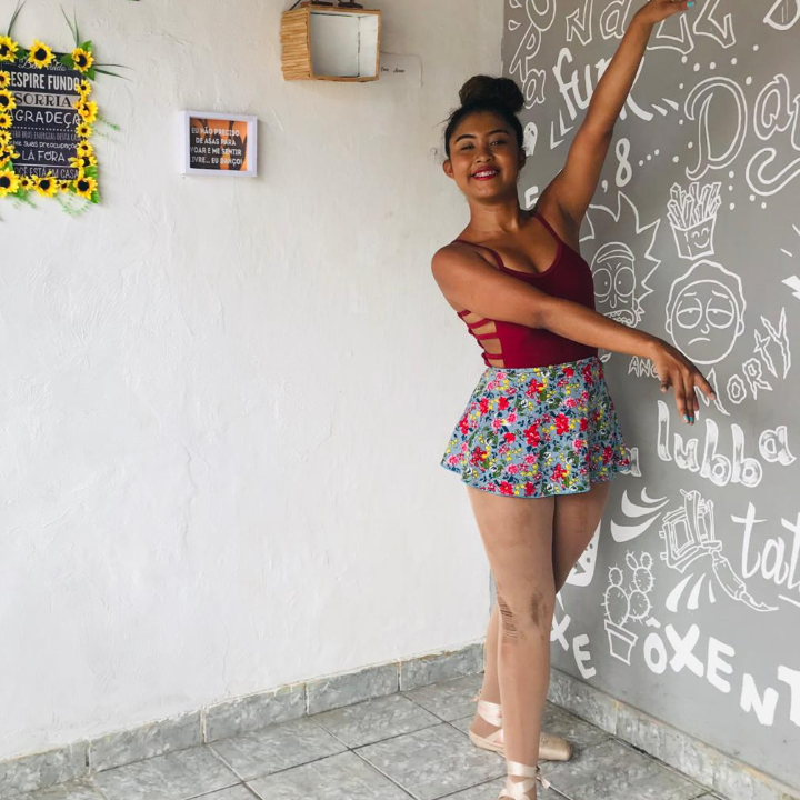 Bailarina, integrante do Núcleo de Dança Jane Santos, estudante de Jazz Dance, Clássico e Danças de Matrizes Africanas, trabalho com animações e produções de eventos culturais. Participei de vários festivais como festival Sonhos e Movimentos, Festdance, Fendafor Fortaleza, Fendafor Intinerante Guaramiranga, entre outros. Na capoeira sou aluna no grupo Cordão de Ouro Casa do Capoeira CE tendo por Mestra Paulinha Zumba, atuante nas danças de matrizes africanas e regionais, musicalidade da capoeira, eventos nacionais e internacionais como Festival Internacional de Capoeira Bambazumba, Menina de Ouro, Cordel Nordestino, GTI Grupo de Treinamento Intensivo de Capoeira.Vídeos