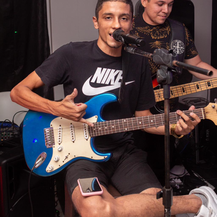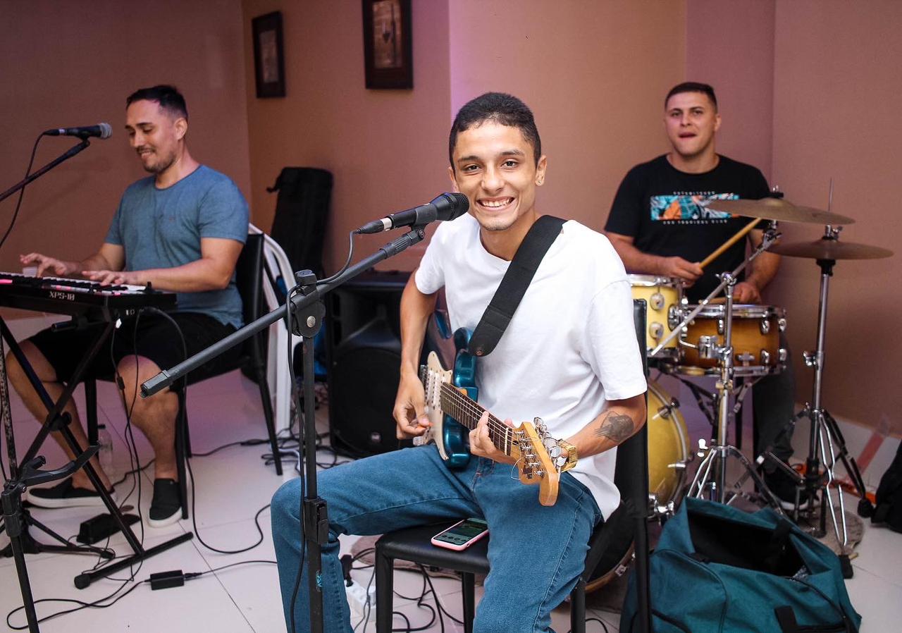 Reportagem em todo o estado, vocalista Thiaguinho.