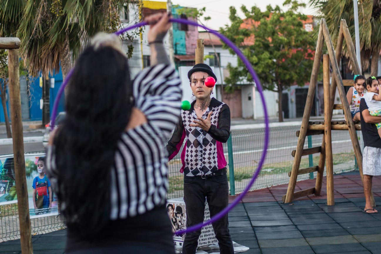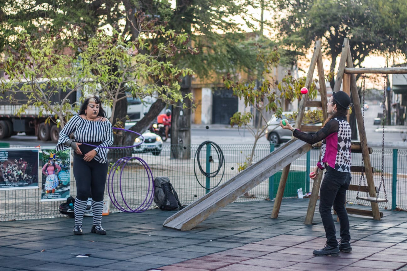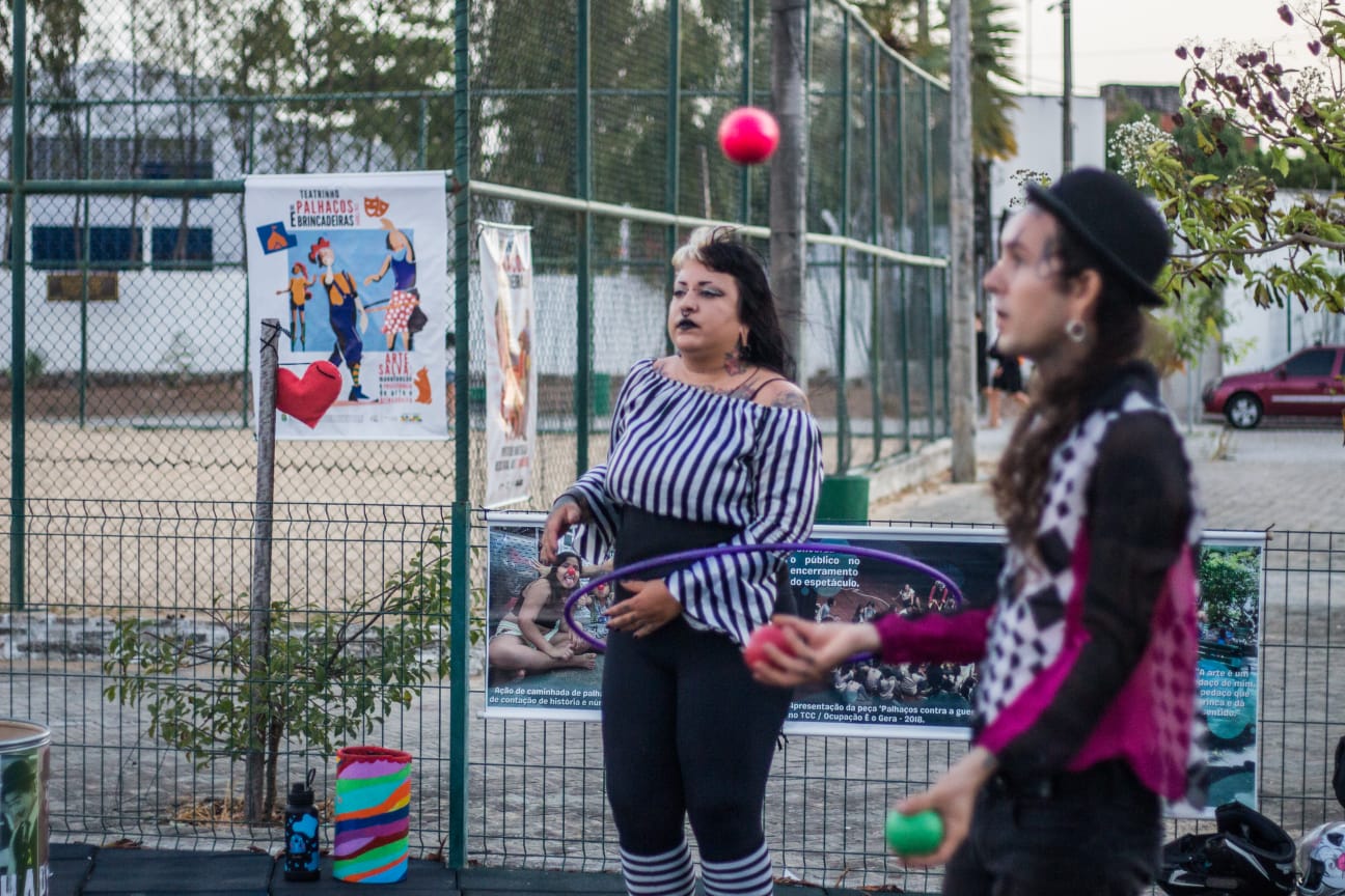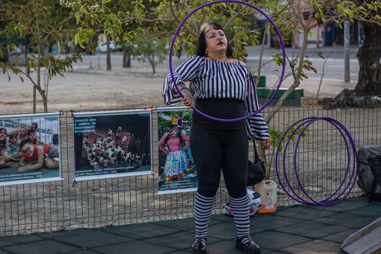 Me chamo Carol Vieira. Sou artista de rua, malabarista, palhaça, artesã e produtora cultural. Natural do Rio de Janeiro, trabalho com arte e cultura desde 2013, participando de trupes circenses itinerantes e percorrendo alguns estados do Brasil. Desde 2020 moro no Ceará, onde iniciei alguns projetos, como o “Salamandras”, voltado para performances com fogo; pesquisas em audiovisual, como o trabalho "Arte de Rua"; e o FreakFlow, duo que fundei em 2022 e integro desde então, difundindo arte de rua e cultura circense, com apresentações em praças, escolas, saraus e equipamentos culturais. Meus últimos trabalhos foram a produção do projeto “Arte nas Praças”, contemplado pela PNAB, que consistiu em espetáculos gratuitos circulando com o número “Ignis et Circense”; e, como palhaça Faíska, apresentei meu número “No Eixo do Afeto” na mostra “Ô Bextera!”, da Academia do Riso, no Teatro J. Alencar.
