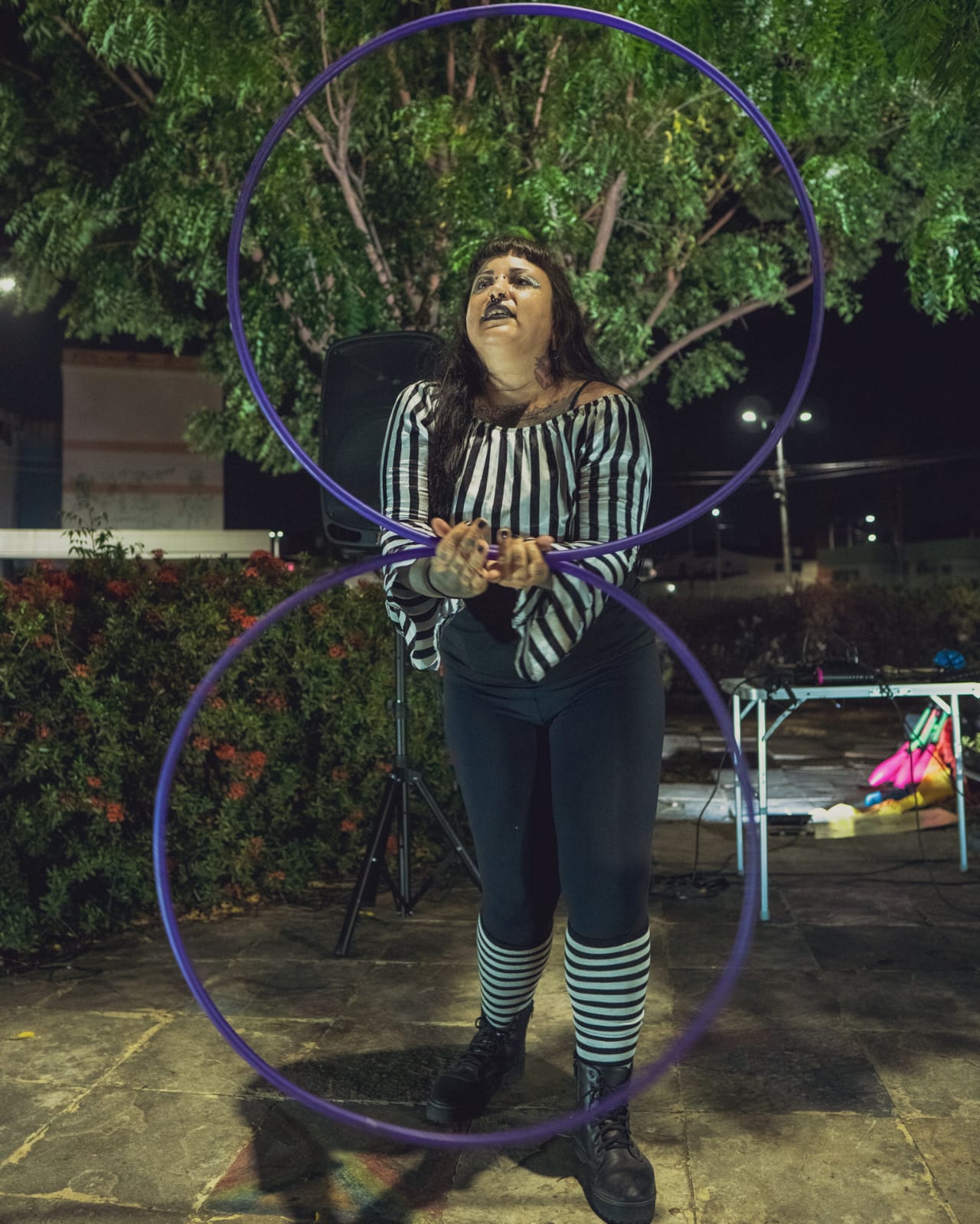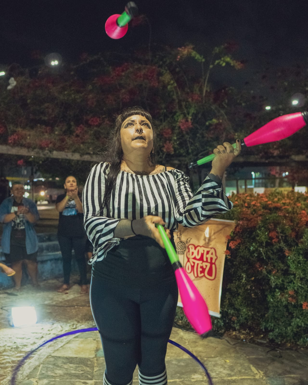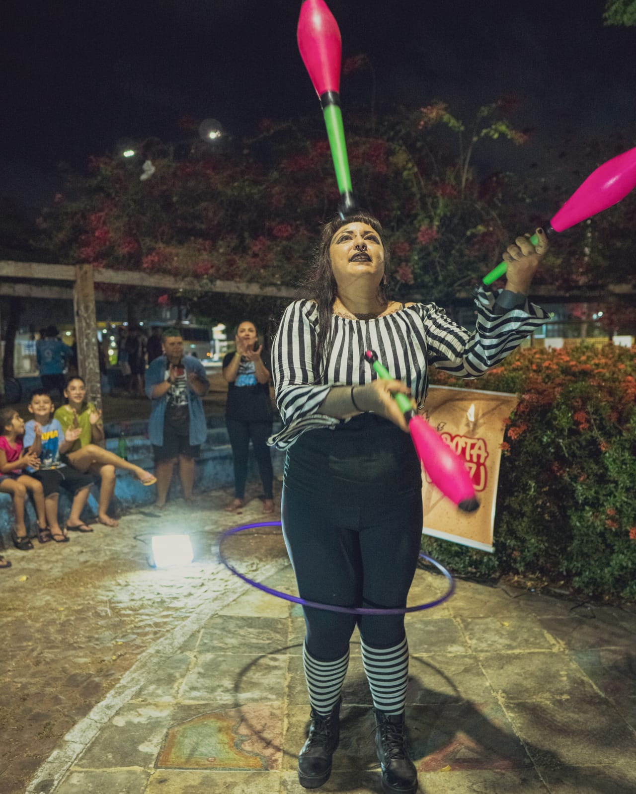 Me chamo Carol Vieira. Sou artista de rua, malabarista, palhaça, artesã e produtora cultural. Natural do Rio de Janeiro, trabalho com arte e cultura desde 2013, participando de trupes circenses itinerantes e percorrendo alguns estados do Brasil. Desde 2020 moro no Ceará, onde iniciei alguns projetos, como o “Salamandras”, voltado para performances com fogo; pesquisas em audiovisual, como o trabalho "Arte de Rua"; e o FreakFlow, duo que fundei em 2022 e integro desde então, difundindo arte de rua e cultura circense, com apresentações em praças, escolas, saraus e equipamentos culturais. Meus últimos trabalhos foram a produção do projeto “Arte nas Praças”, contemplado pela PNAB, que consistiu em espetáculos gratuitos circulando com o número “Ignis et Circense”; e, como palhaça Faíska, apresentei meu número “No Eixo do Afeto” na mostra “Ô Bextera!”, da Academia do Riso, no Teatro J. Alencar.