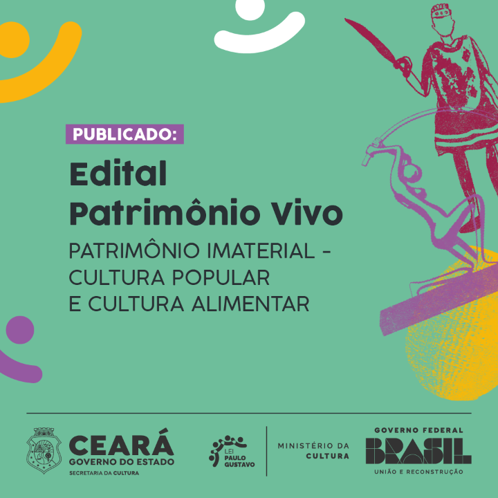 O Edital Patrimônio Vivo foi criado para selecionar e apoiar a realização de iniciativas destinadas à promoção, preservação e difusão do patrimônio cultural material, patrimônio cultural imaterial, cultura alimentar e cultura popular cearense por meio da seleção pública de agentes culturais. Este edital de fomento promove os direitos de acesso às políticas do campo cultural e é parte das ações previstas pela Lei Paulo Gustavo (LPG) (Lei Complementar n. 195/2022), marco de resistência da Cultura e o maior investimento direto já realizado no setor cultural brasileiro.